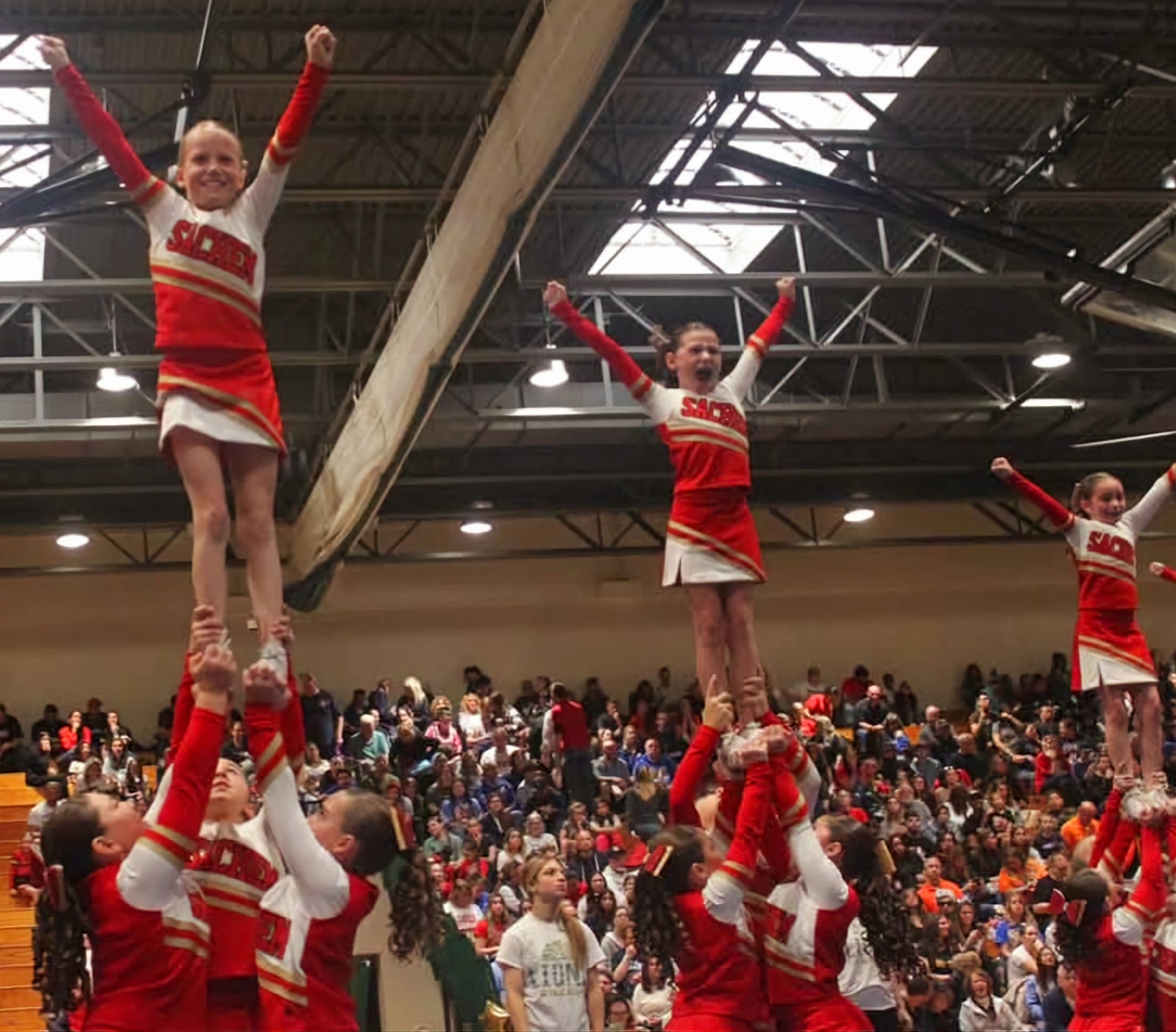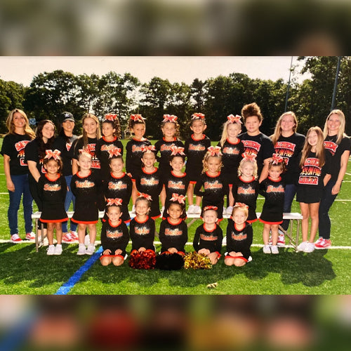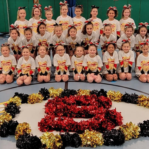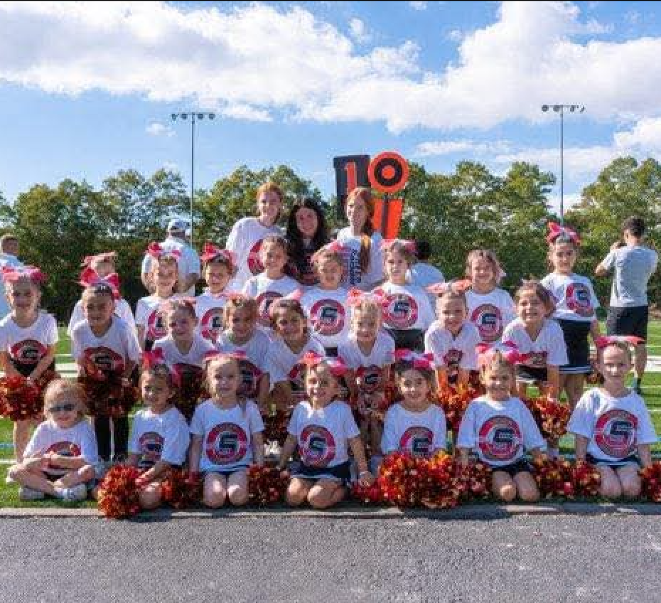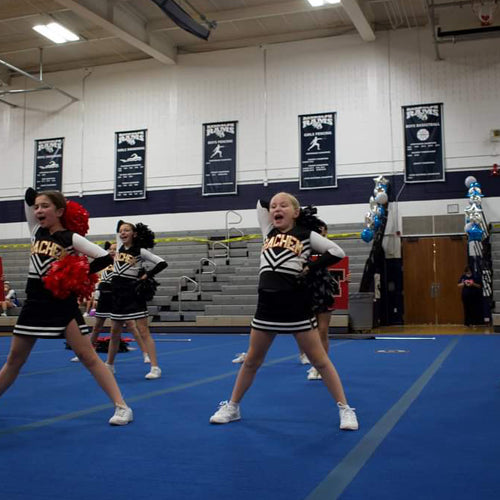 Open for ages 5-7 & 7-9. This is a great opportunity to learn the basics of cheerleading, with concentration on cheers, motions, jumps, stunts, while learning the fundamentals of cheering on the sideline of a football game. Girls meet during the summer for 1-2x a week of practice, & then will cheer for 1 game each weekend from Sept-Nov. This team is walk-on and open for all skill l